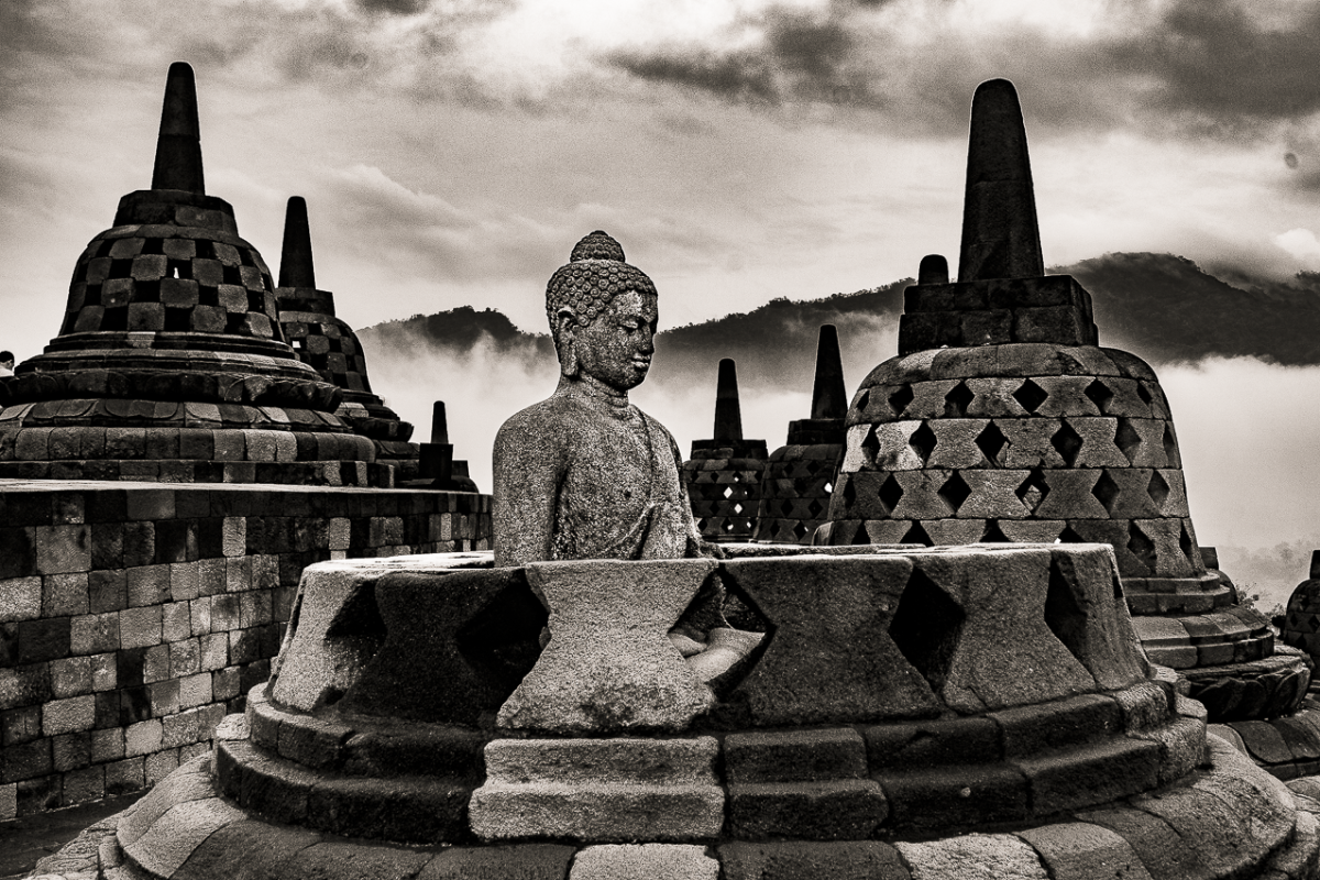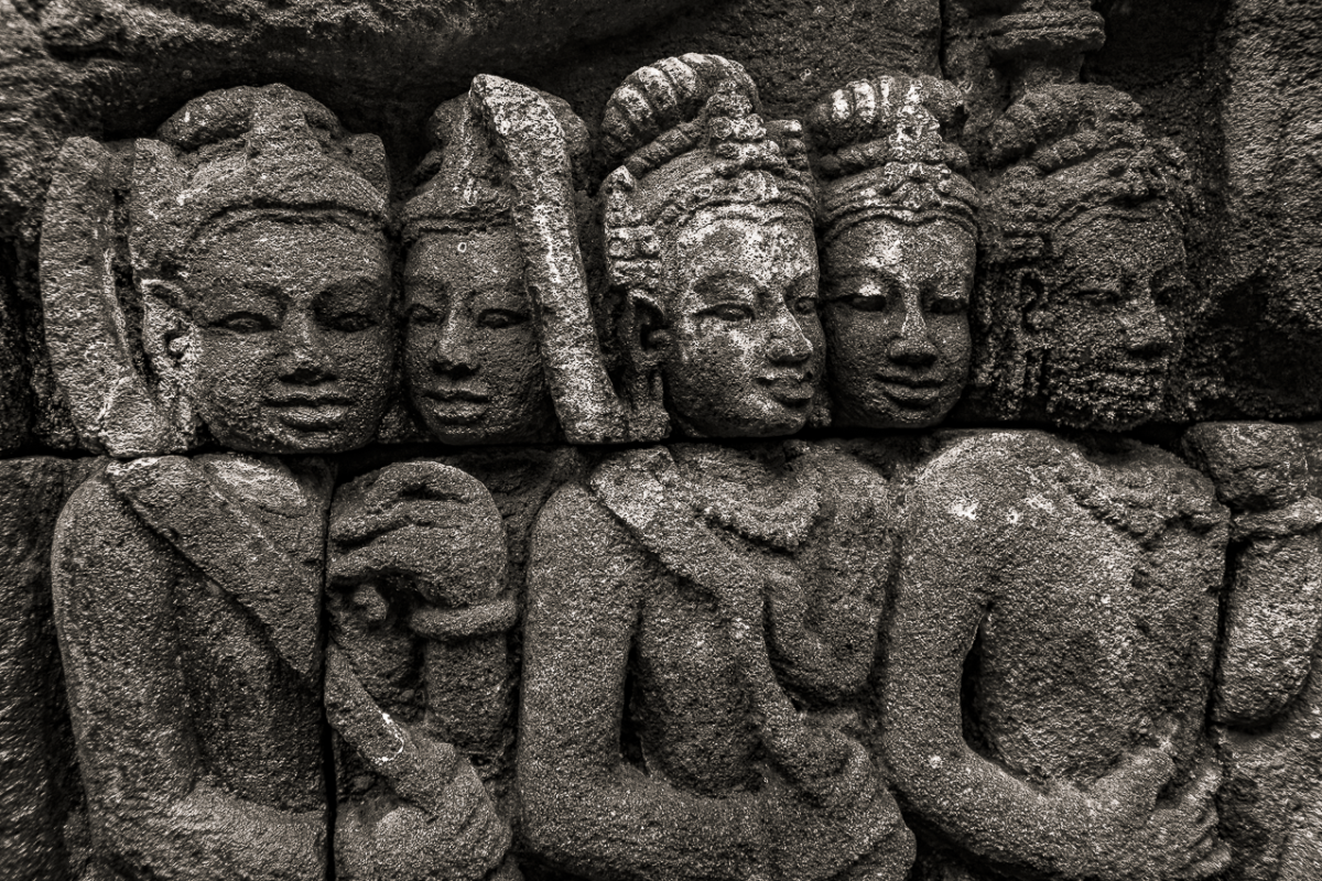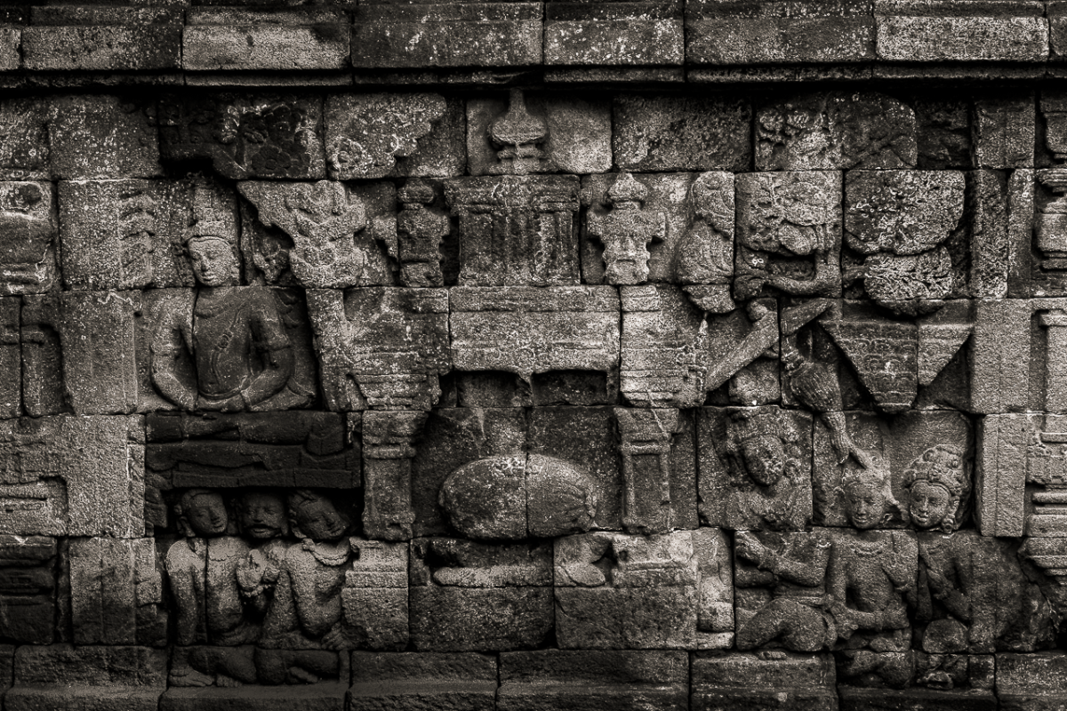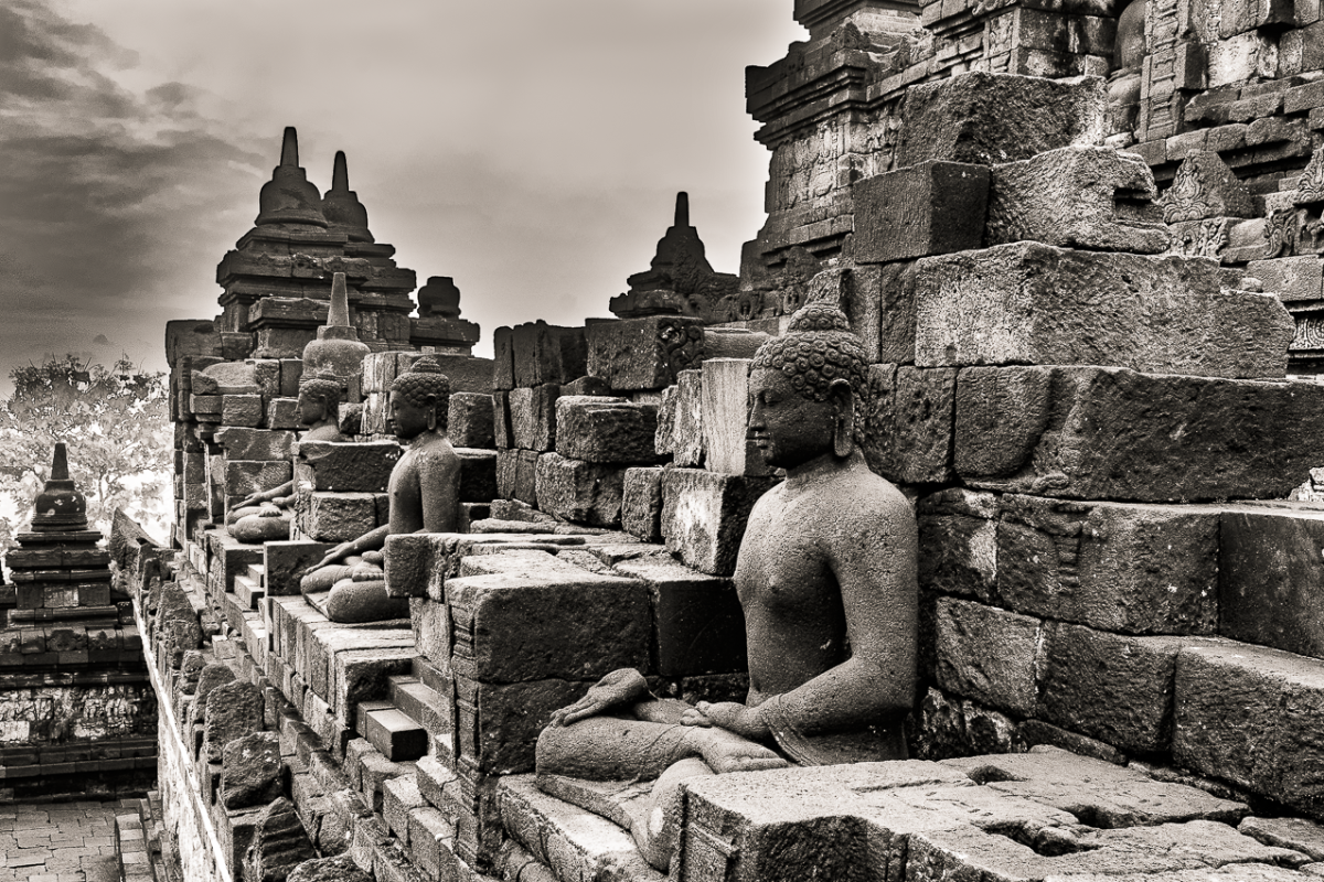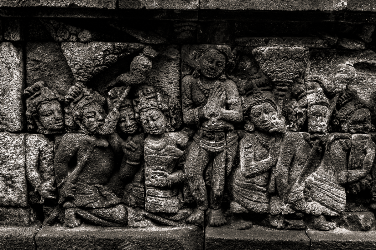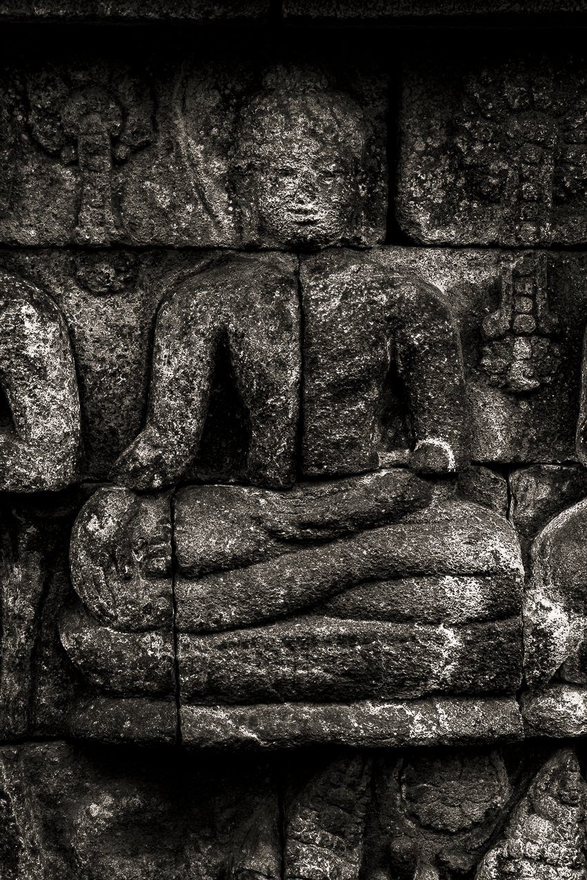 Au travers du noir et blanc, la série de photographies du temple Borobudur en Indonésie évoque l'éternité de son architecture millénaire. Chaque photographie devient une fenêtre sur le passé, où les bas-reliefs du Borobudur continuent de raconter des récits silencieux.