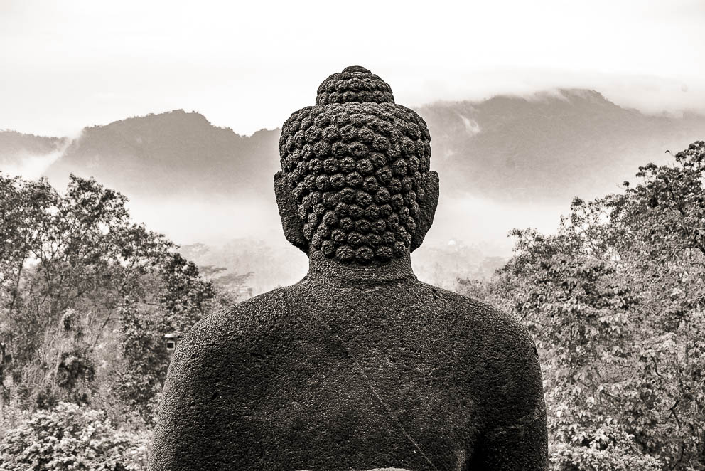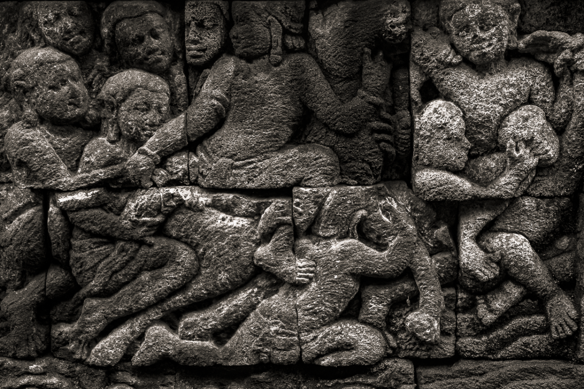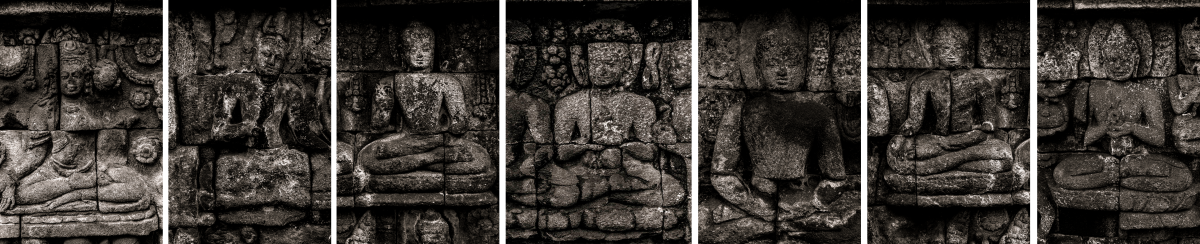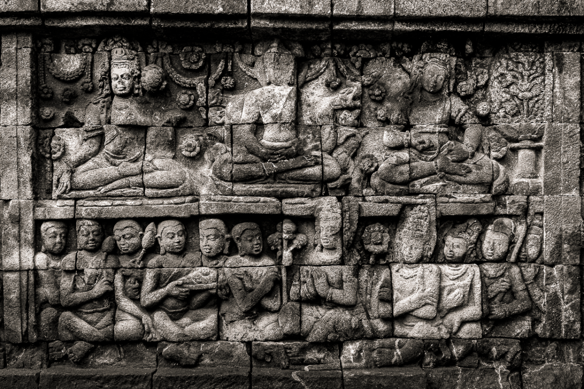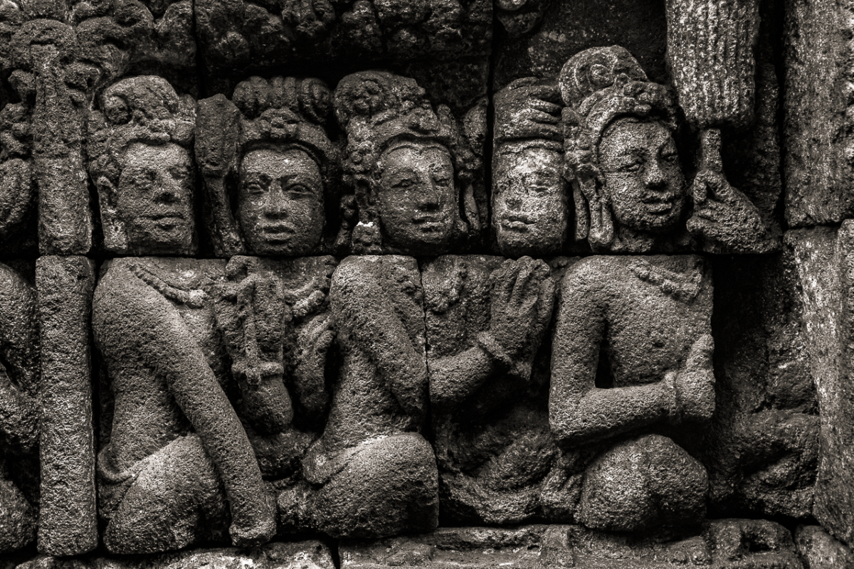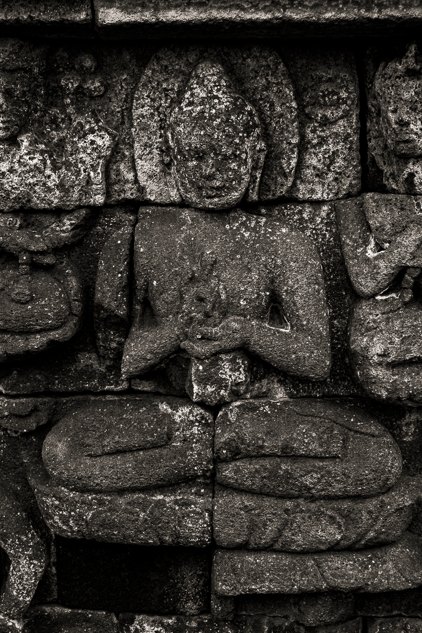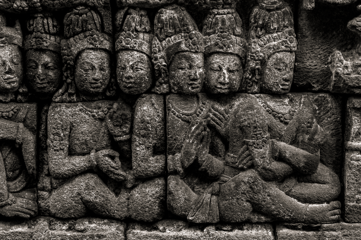 Au travers du noir et blanc, la série de photographies du temple Borobudur en Indonésie évoque l'éternité de son architecture millénaire. Chaque photographie devient une fenêtre sur le passé, où les bas-reliefs du Borobudur continuent de raconter des récits silencieux.