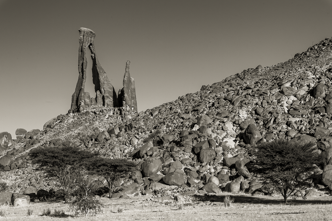 Le désert de l'Ennedi au Tchad, des paysages désertique d'une beauté austère et captivante.
